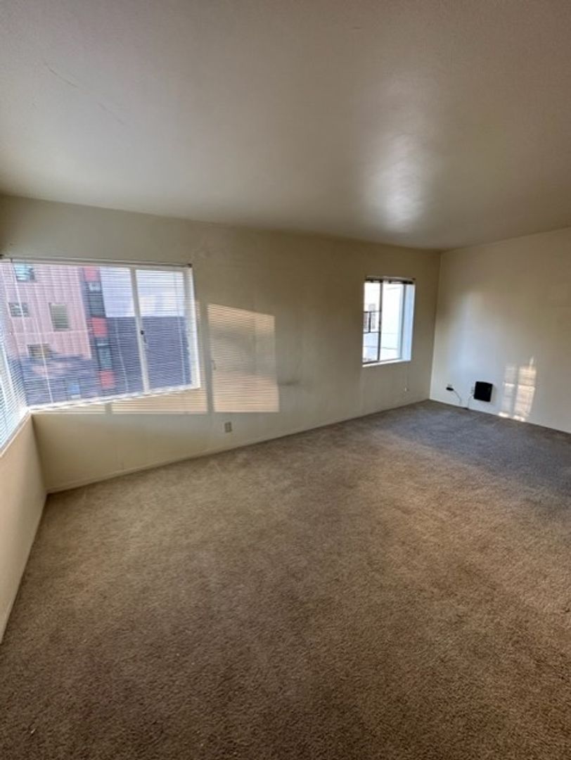 This 4th-floor 1-bedroom apartment offers elevated views and excellent natural light, with large windows in both the living room and bedroom. Located in the iconic 1950s Eugene Manor, the unit blends original mid-century details with modern updates including new flooring, a contemporary range, and refrigerator.