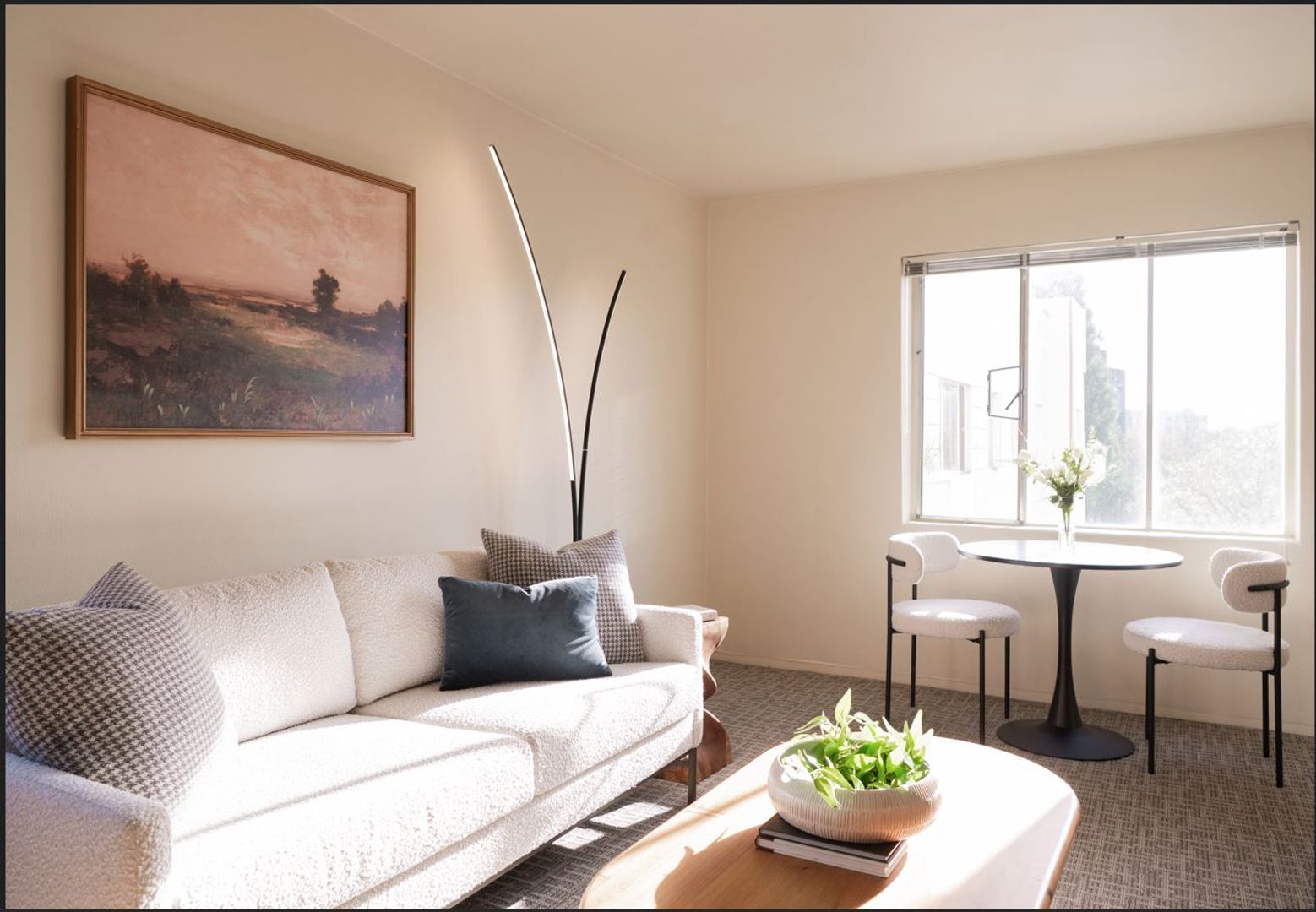 This spacious 1 bedroom, 1 bath retro-chic apartment beautifully preserves its mid-century charm with original 1950s cabinetry, complemented by modern updates like a flooring, range and refrigerator. This unit boasts abundant storage options with a walk-in closet and additional hallway storage.