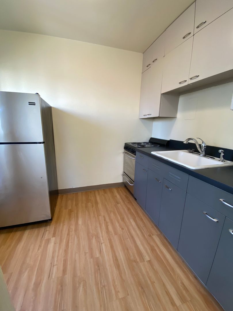 This spacious 1 bedroom, 1 bath retro-chic apartment on the fourth floor beautifully preserves its mid-century charm with original 1950s cabinetry, complemented by modern updates like a flooring, range and refrigerator. This unit boasts abundant storage options with a walk-in closet and additional hallway storage.