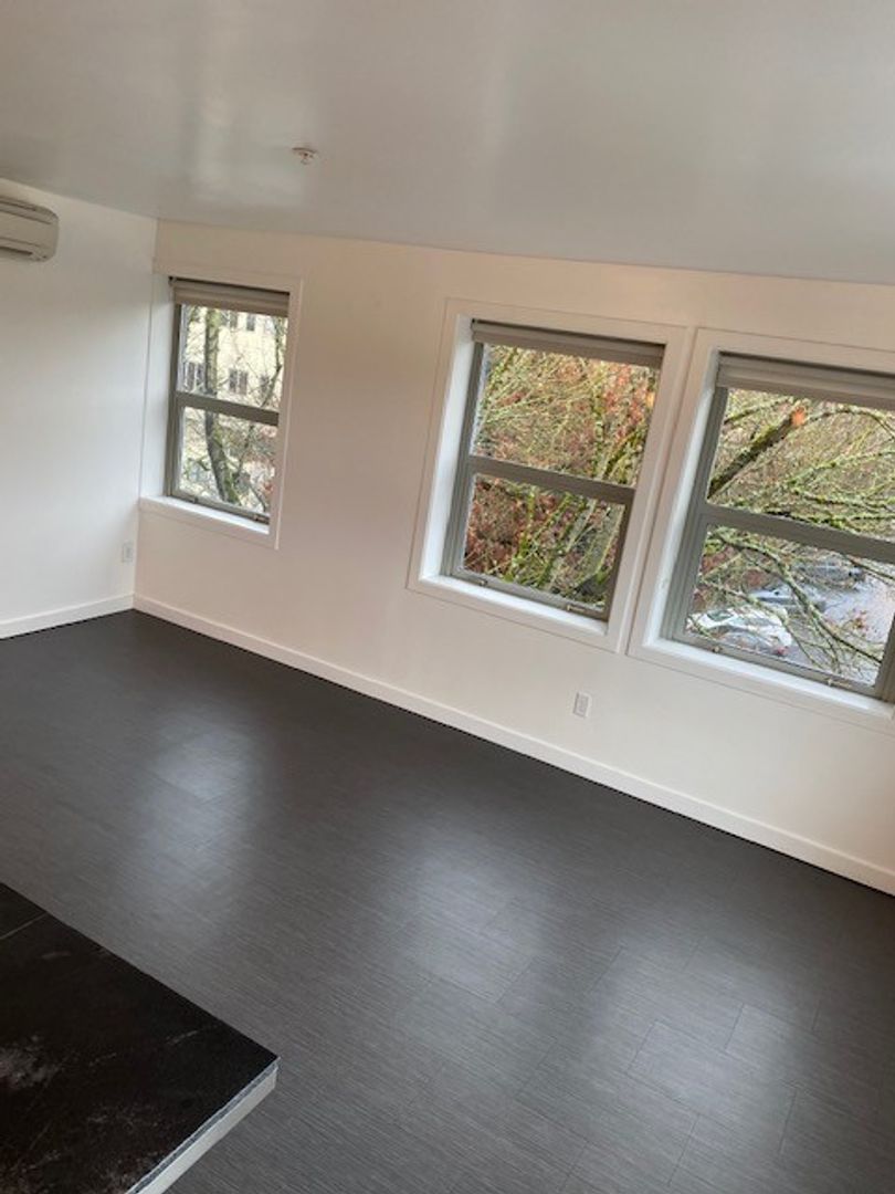 A stackable washer and dryer is located in the shared hallway closet. The bedrooms and living room feature individual air conditioning and heating units for personalized temperature control. Located just blocks from the main bus station and Whole Foods this apartment is in an ideal location. Apply today!