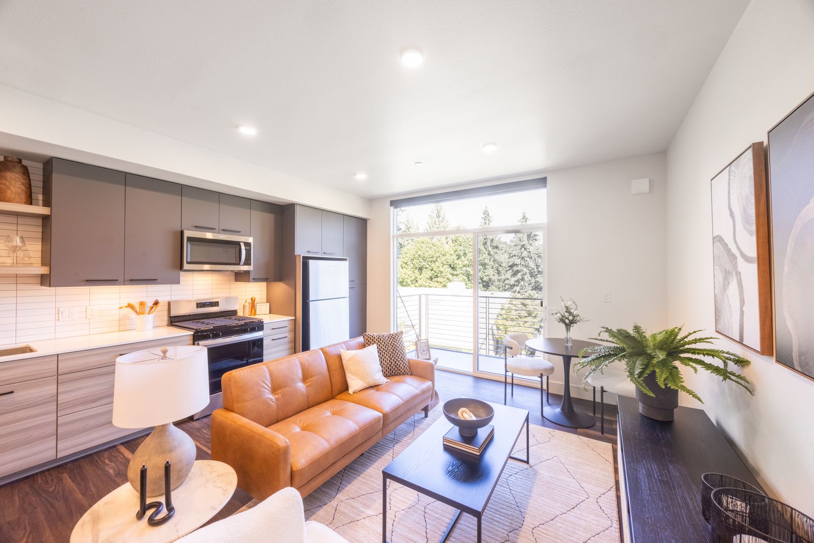 Floor-to-ceiling windows and expansive balconies offer stunning, unobstructed views of Eugene, creating a serene backdrop for your daily life.