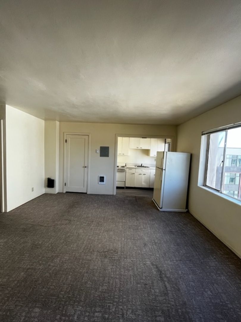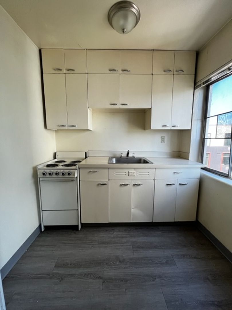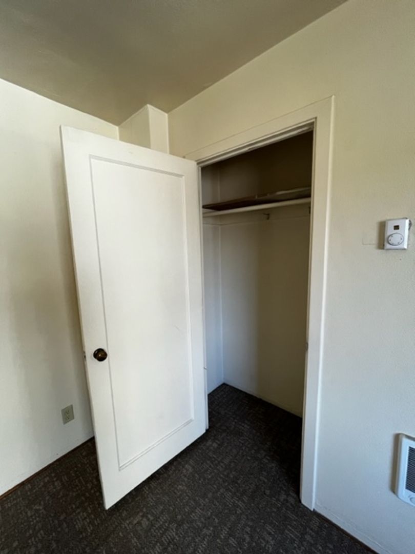 This spacious retro-chic apartment on the fifth floor beautifully preserves its mid-century charm with original 1950s cabinetry, complemented by modern updates like a range and refrigerator. This unit boasts abundant storage options with a walk-in closet and additional hallway storage.